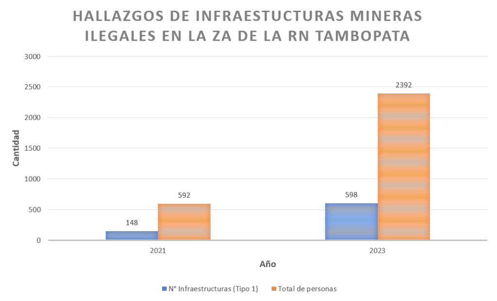 En el análisis de 2021, que coincidió con el fin de la Operación Mercurio e inicio del Plan Restauración, se identificaron 148 dragas remanentes en espacios degradados. Dos años después, en agosto de 2023, utilizando la misma tecnología, se han encontrado 598 dragas, un aumento de más del 400%. Este hallazgo demuestra el retorno de la minería ilegal en la zona de La Pampa.